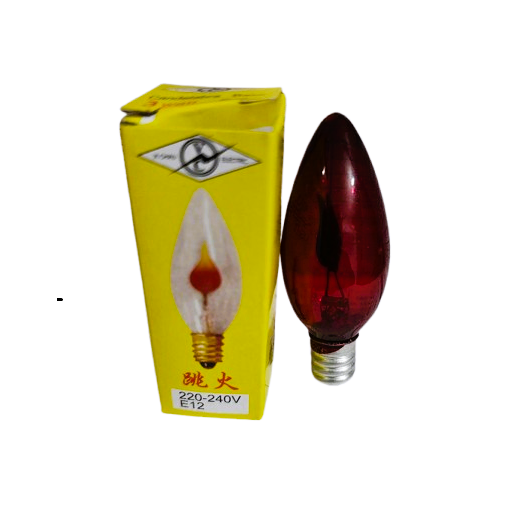 Bec pentru candele E12 rosu design cu imitație de flacără aprinsă.